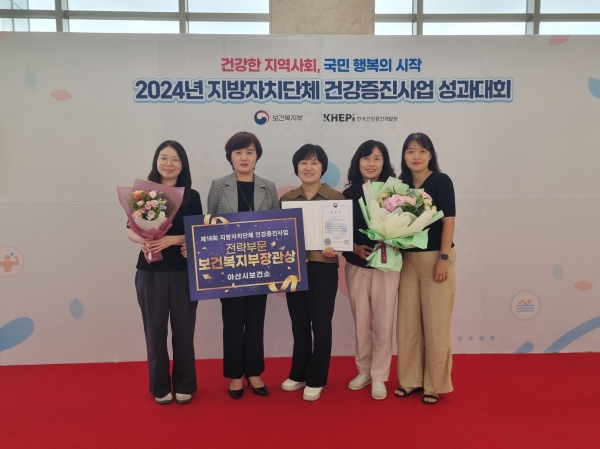 [세종타임즈] 아산시가 5일 서울 The-K컨벤션센터에서 열린 ‘2024년 제16회 지방자치단체 건강증진 사업 성과대회’에서 전략 부문 우수기관으로 선정돼 보건복지부 장관상을 받았다.