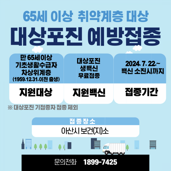 [세종타임즈] 아산시가 65세 이상 취약계층을 대상으로 대상포진 무료 예방접종을 실시한다고 밝혔다.