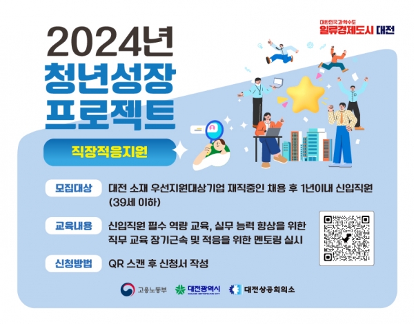 청년성장프로젝트는 12월까지 진행되며, 모집은 접수 마감일까지 상시 진행한다. 세부 프로그램별 운영 일정이 다르므로, 참여를 희망하는 청년과 기업은 고용24 또는 대전청년포털 홈페이지를 통해 원하는 장소와 프로그램을 선택해 신청하면 된다.