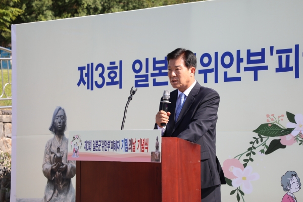 이날 박범인 금산군수, 김영자 회장을 비롯해 관계자 100여명이 참석한 가운데 우리의 아픈 역사를 기억하고 위안부 피해자들의 인권과 명예의 회복을 기원하는 시간을 가졌다.