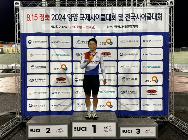 [세종타임즈] 금산군청 사이클팀 장경구 선수가 지난 22일 양양사이클경기장에서 8.15 경축 2024 양양 국제사이클 대회 옴니움 부문 우승을 차지했다.