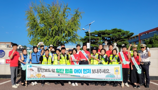 [세종타임즈] 금산군은 지난 28일 금산중앙초에서 민관 합동으로 ‘아이 먼저’ 어린이 교통안전 캠페인을 전개했다.