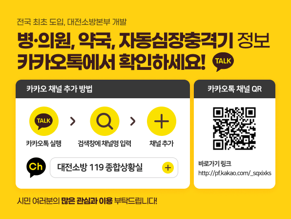 이를 해결하기 위해 대전소방본부는 병의원·약국 정보, 자동심장충격기 위치, 응급처치 방법 등을 쉽게 조회할 수 있는 시스템을 안내했다.