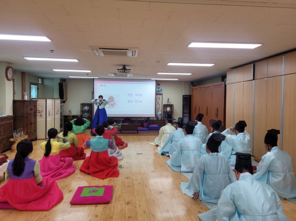‘전통예절의 날’ 행사는 전통한복 바르게 입는 법, 올바른 배례법 및 인사법, 차례상 차리는 방법 등 전통예절을 배우는 프로그램으로 시작됐다.