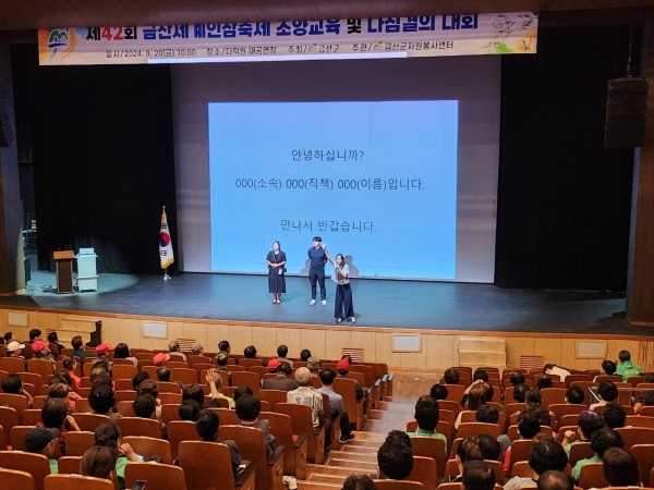 금산군자원봉사센터는 지난 20일 금산다락원 대공연장에서 자원봉사자와 관계자 등 600여명이 참석한 가운데 소양교육 및 다짐결의대회를 열고 친절매너응대법 주제 교육을 진행하고 자원봉사자 결의문을 낭독하며 축제의 성공적 개최를 위해 노력할 것을 다짐했다.