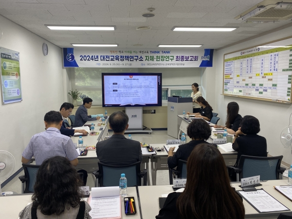 이번 최종보고회에는 연구책임자, 공동연구진, 심의위원 등 약 15명의 전문가가 참여해 과제별로 연구 성과를 심의했다. 9월 25일부터 27일까지는 자체 연구와 현장 연구 심의가 이뤄졌으며, 첫날에는 대전의 자연환경을 활용한 아웃도어교육 활성화 방안, 생성형 인공지능 활용 교육 실태 분석 등이 논의되었다.