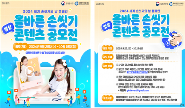 또한 질병관리청 공식 누리소통망에 올바른 손씻기에 대한 카드뉴스를 게시하고 영상 콘텐츠 공모전을 개최하는 등 올바른 손씻기 실천에 대한 국민의 관심과 참여를 독려한다.