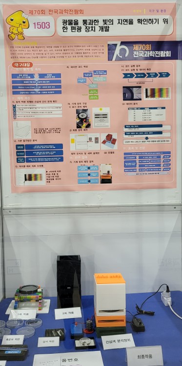 이번 대회에서 대전과학고등학교 2학년 김지안, 신유안, 한지후 학생의 ‘광물을 통과한 빛의 지연을 확인하기 위한 편광 장치 개발’이라는 연구가 전국 최우수상 5편 중 하나로 선정되는 영예를 안았다.
