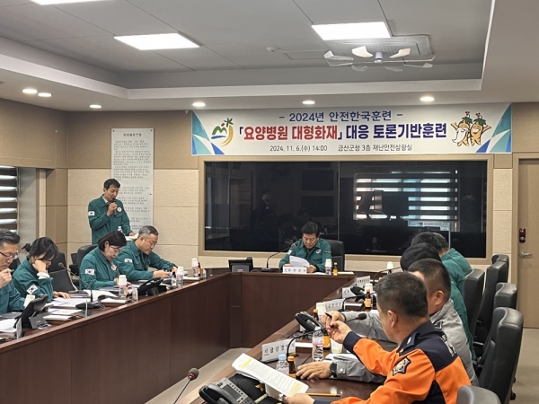 [세종타임즈] 금산군은 지난 6일 군청 재난안전상황실에서 재난관리책임기관의 재난대응 역량 강화와 함께 현장 중심의 신속한 재난대응 체계구축을 위한 2024년 재난대응 안전한국훈련의 일환으로 토론기반 도상훈련을 시행했다.