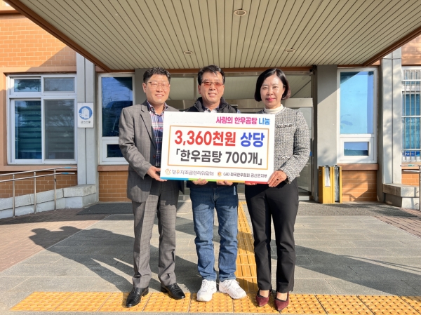 이 단체는 어려운 이웃들을 위해 매년 소고기를 정기적으로 후원하고 있으며 지난 16일에도 320만원 상당 한우 600g 150박스를 기탁한 바 있다.