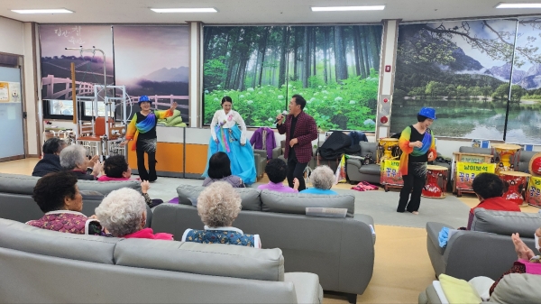 이날 고고장구팀의 공연과 함께 지역 내 금화루식당의 주인 부부가 노래를 불러 사회보장시설에 입소한 어르신들에게 좋은 추억을 선사하는 훈훈한 분위기를 만들었다.