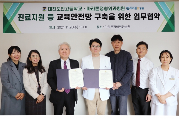 [세종타임즈] 대전도안고등학교는 10월 16일부터 11월 20일까지 연세정원치과의원, 유&그린한의원, 아이비내과의원, 마라톤정형외과병원 등 지역 내 의료기관과 업무협약을 체결하고 ‘도안고 교육안전망 1차 구축’을 완료했다고 밝혔다.