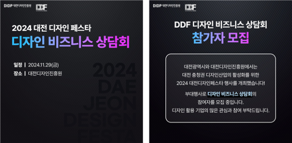 대전디자인진흥원이 주최하는 ‘2024 대전디자인페스타’는 2025년 디자인 기업 지원사업뿐만 아니라 제품디자인, 시각디자인, 서비스디자인 분야의 다양한 디자인 상담 규모를 확보해 다양한 중소기업이 자문받고 중부권 유일 디자인 행사로서의 면모를 보여줄 것으로 기대된다.