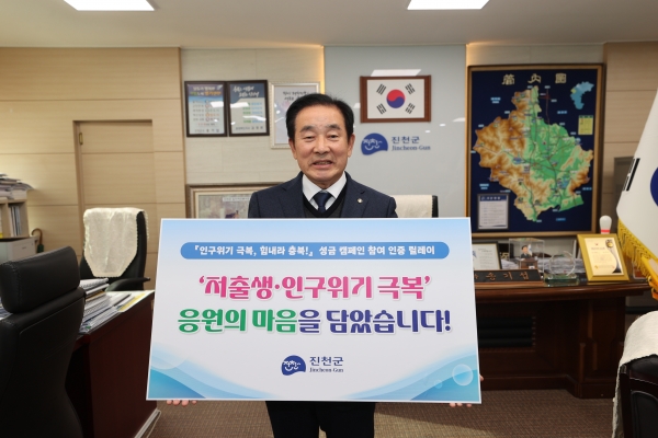 송 군수는 “이번 캠페인이 저출생 위기 극복의 좋은 계기가 되길 기대한다”며“앞으로도 출산 친화적 환경을 조성해 아이를 안심하고 키울 수 있는 진천군이 되도록 최선을 다하겠다”고 말했다.
