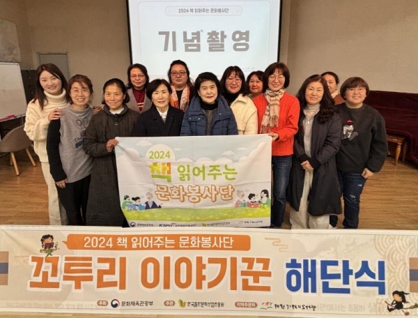 ‘2024 책 읽어주는 문화봉사단’ 해단식에는 사업개요 및 경과보고 한 해 활동이 담긴 영상 시청, 활동 소감을 나누었으며 그림책 ‘행복한 여우’를 함께 읽으며 그동안의 문화봉사단 활동에 대한 노고를 격려하고 서로에게 박수를 보냈다.