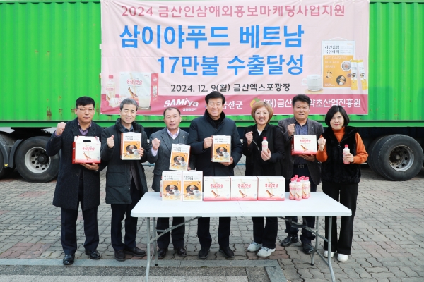 수출 물품은 홍삼농축액, 홍삼정과, 키즈홍삼 등 기존 베트남 시장에 안정적으로 수출되고 있는 제품을 비롯해 지난해부터 올해까지 금산군의 신상품 개발지원사업을 통해 선보인 ‘홍삼곡물라떼’, ‘홍삼햇살’ 등 신제품이 포함됐다.