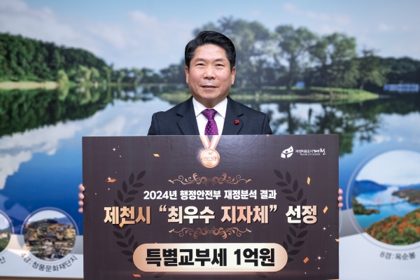 [세종타임즈] 제천시가 행정안전부에서 평가한 2024년 지방자치단체 재정분석에서 종합등급 최고등급인 ‘가’등급을 달성해 행정안전부장관 기관표창과 함께 1억원의 특별교부세 인센티브를 확보했다고 지난 27일 밝혔다.