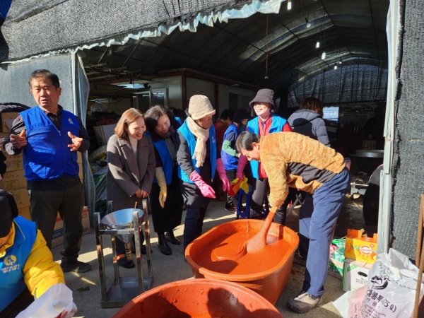 이날 박범인 금산군수는 박선자 복수면장과 함께 현장을 찾아 회원들을 격려하고 고추장 담그기에 힘을 보탰다.