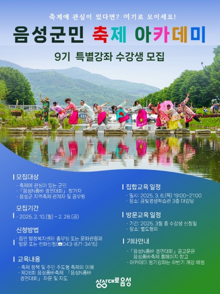 [세종타임즈] 음성군은 주민 주도형 축제 및 전문인력양성을 위한 제9기 음성군민 축제 아카데미 수강생을 모집한다.