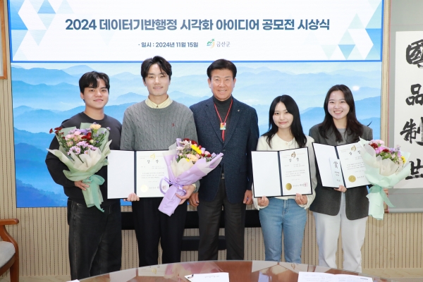 그동안 군은 데이터 분석을 활용한 정책 지원, 금산군 디지털 플랫폼 인공지능 브리핑 서비스 구축, 공유데이터 활성화, 공무원 대상 데이터 분석·활용 교육, 시각화 아이디어 공모전 개최 등 노력을 펼쳐왔다.