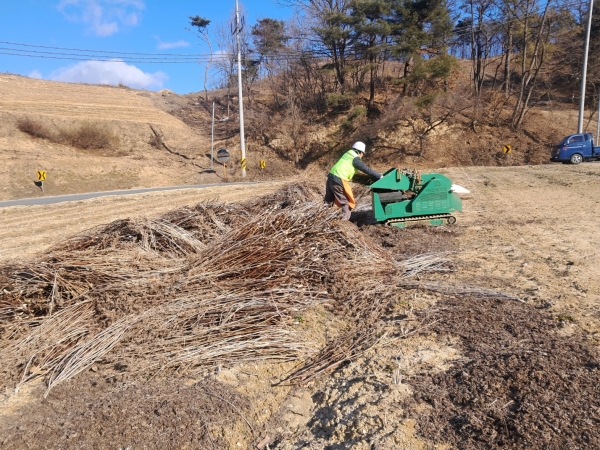 [세종타임즈] 금산군은 산불 예방, 미세먼지 저감 등을 위해 봄철 영농부산물을 무료로 파쇄해 주고 있다.