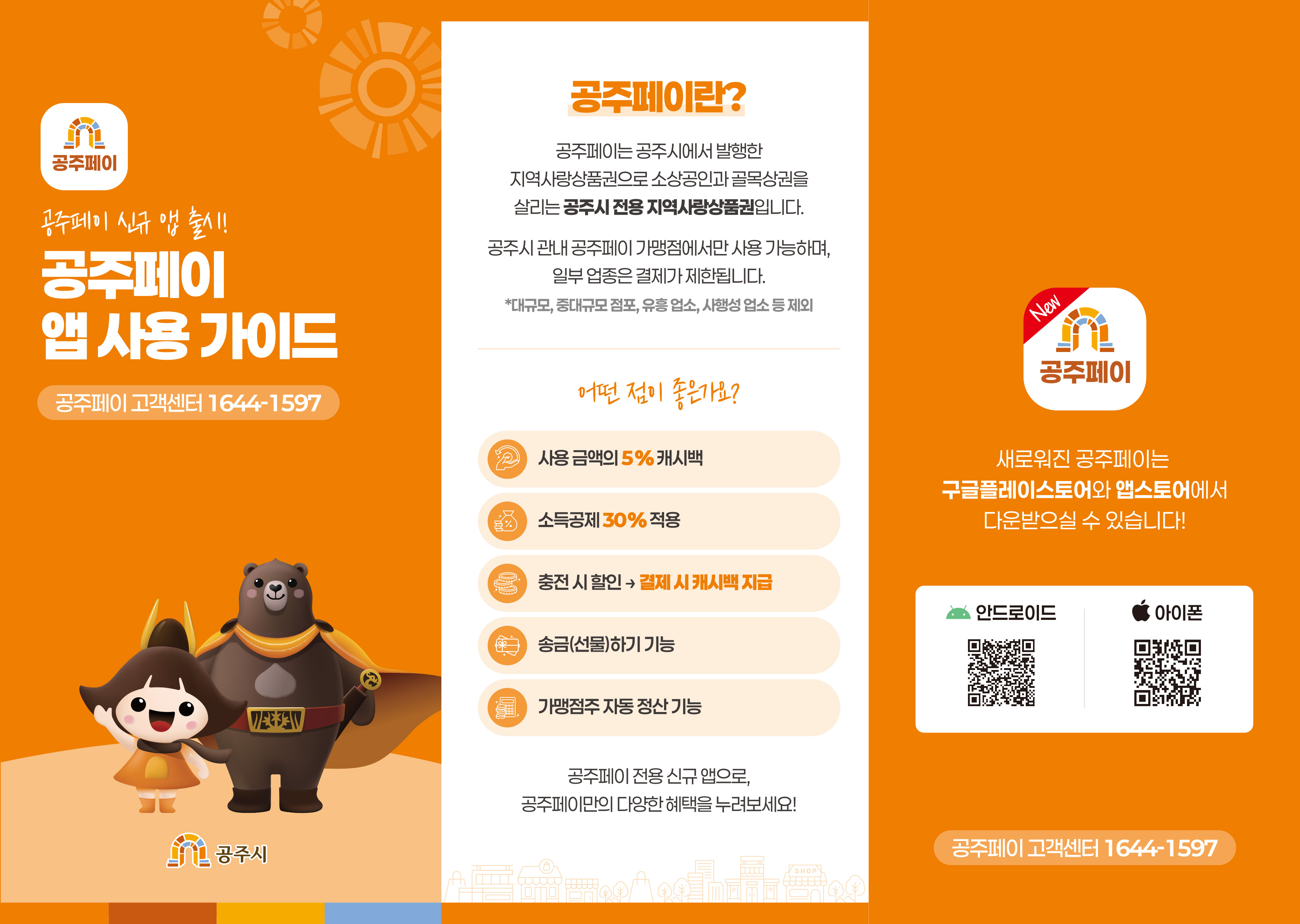 한편, 공주시는 기존 운영사였던 KT와의 계약 만료에 따라 공개 입찰을 거쳐 나이스정보통신을 새 운영 대행사로 선정한 바 있다. 이번 시스템 개편으로 공주페이의 결제 혜택도 기존 선할인 방식에서 결제 금액의 5%를 캐시백으로 돌려주는 방식으로 변경됐다. 이는 행정안전부의 ‘2024년 지역사랑상품권 발행지원사업’ 지침에 따른 것이다.