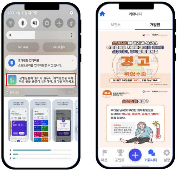 한국건강증진개발원 김헌주 원장은 “이번 ‘오늘건강’ 앱활용 어르신 폭염 대응 서비스는 보건복지부와 기상청, 한국건강증진개발의 협업을 통해 이루어진 시의적절한 서비스로 사료된다”며 “앞으로도 디지털 기술을 활용해 필요한 곳에 제공할 수 있는 공공형 건강관리 서비스를 지속 확대해 나가겠다”고 밝혔다.
