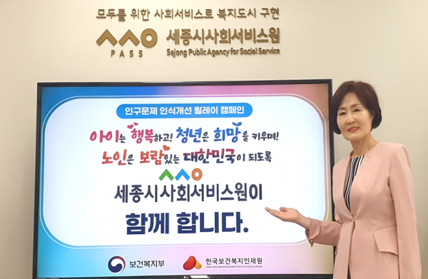 김명희 원장은 “이번 캠페인을 통해 세종시민들과 함께 인구문제의 심각성을 공유하고 함께 해법을 모색하는 계기가 되기를 바란다”며 “앞으로도 돌봄과 사회서비스 제공을 넘어, 지역사회 지속가능성을 높이는 공공기관으로서의 책무를 다하겠다”고 말했다.
