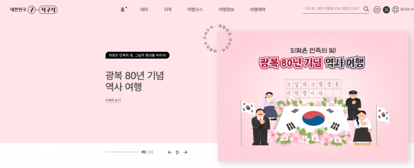 [세종타임즈] 한국관광공사는 광복 80년을 맞이해 오는 8월 31일까지 국내여행 정보 통합 플랫폼 ‘대한민국 구석구석’에서 광복절 특집전을 선보인다.