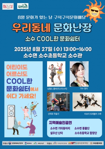 이번 공연은 ‘소수 COOL한 문화쉼터’를 주제로 폭염으로 지친 주민들에게 실내에서 즐길 수 있는 다채로운 문화예술 프로그램을 선보인다.