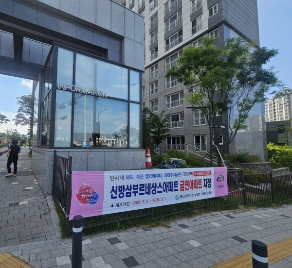 이번에 금연아파트로 지정된 신방삼부르네상스 아파트에는 현판과 현수막, 금연구역 안내표지가 지원된다.