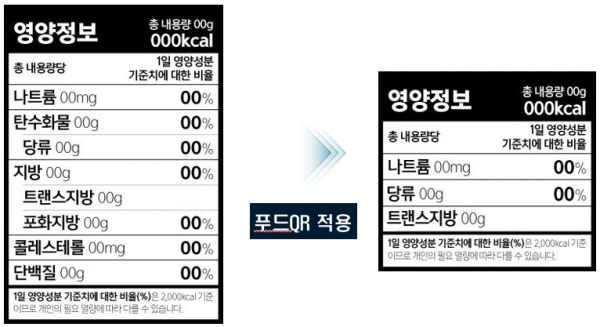 또 모든 영양성분 정보를 푸드QR로 제공하는 경우 열량, 나트륨, 당류 및 트랜스지방은 반드시 제품 포장지에 표시해야 한다.