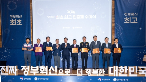 ‘정부혁신 최초·최고 사례 공모’는 행정안전부와 한국행정연구원이 공동으로 주관해 국민 편의·안전 개선을 위해 가장 혁신적인 사례를 발굴·인증하는 제도로 올해는 88개 사례 중 세계최초 1건·국내최초 3건·국내최고 4건의 사례가 선정됐다.