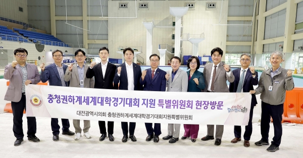 [세종타임즈] 대전시의회 충청권 하계세계대학경기대회 지원 특별위원회는 8일 2027 충청권 하계세계대학경기대회의 경영·다이빙 경기장으로 활용될 용운국제수영장을 방문해 시설 현황을 점검했다.