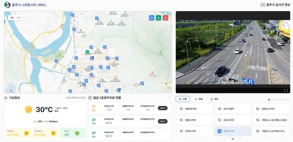 이번 서비스는 칠금1공영주차장의 주차 현황을 비롯해 교통상황, 재난·안전 CCTV, 실시간 날씨 등 생활밀착형 정보를 종합적으로 제공하는 플랫폼이다.