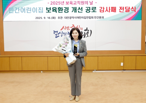 [세종타임즈] 대전광역시의회 이금선 교육위원장은 지난 9월 16일 민간 어린이집 보육환경 개선과 보육 교직원 권익 증진에 기여한 공로로 감사패를 받았다고 밝혔다.