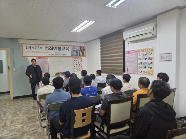 교육에서는 외국인 근로자들이 일상생활에서 쉽게 노출될 수 있는 범죄 유형과 예방법, 피해 발생 시 대응 요령, 기초 법질서 및 생활법률 상식 등에 대해 안내하며 실질적인 도움이 될 수 있는 정보를 제공했다.