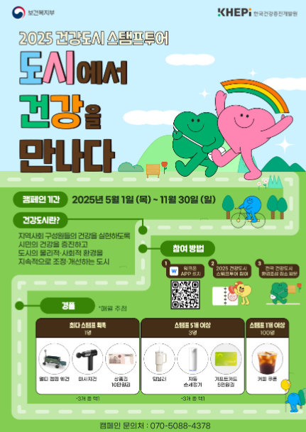 이번 캠페인은 국민건강증진법 제6조의5 개정에 따른 건강도시 인식 제고와 시민들의 자발적 참여 확산을 목적으로 마련됐으며 올해 5월부터 11월까지 일정으로 추진 중이다.