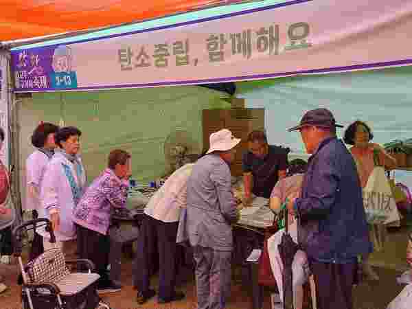 또한 축제 현장에는 자원순환과 탄소중립 홍보부스를 운영해 관광객 1,625명의 ‘실천 다짐 서명’을 받고 1회용품 줄이기 캠페인의 일환으로 텀블러 1,350개, 폐현수막 장바구니 2,200개를 배부하며 생활 속 실천 문화를 확산시켰다.