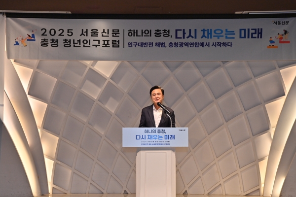 김태흠 충남도지사는 23일 대전 KW컨벤션에서 서울신문, 한반도미래인구연구원이 주최·주관한 ‘충청 청년인구포럼’에 참석해 행사 개최를 축하하고 도의 청년정책을 소개했다.