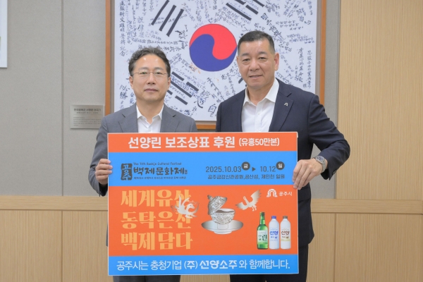 최원철 시장은 “지역 인재 양성과 백제문화제 성공 개최를 위해 힘을 보태주신 ㈜선양소주에 감사드리며 이번 협력이 시민과 함께하는 문화도시 공주를 만들어가는 데 큰 밑거름이 될 것”이라고 밝혔다.