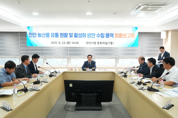 이번 용역은 최신 국내 농산물 유통 환경 변화와 소비 트렌드 분석을 바탕으로 천안시 농산물 유통 구조 실정에 맞는 농산물 유통 활성화 방안을 수립하기 위해 지난 3월 착수해 6개월간 진행됐다.