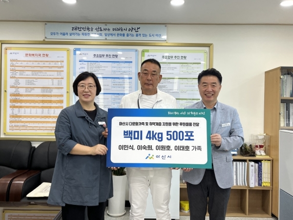 김만섭 아산시 문화복지국장은 “오랜 기간 꾸준히 나눔을 실천해 주신 이민식 씨 가족께 깊이 감사드린다”며 “후원 물품은 도움이 필요한 가정에 전달해 따뜻한 명절 분위기를 만드는 데 소중히 쓰겠다”고 말했다.
