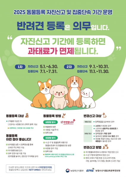 군 관계자는 “반려동물 등록은 유실·유기 방지와 소유자의 책임 의식 강화를 위한 법적 의무사항”이라며 “책임있는 반려문화가 자리 잡을 수 있도록 자진신고 기간 내 소유자의 적극적인 참여를 바란다”고 당부했다.