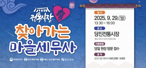 이번 무료 세무상담은 당진전통시장 상인뿐만 아니라 당진시민 누구나 참여할 수 있으며 행사 당일 현장 방문을 통해 신청과 이용이 가능하다.
