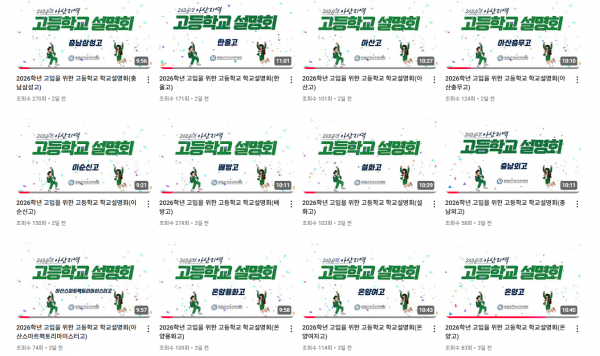 영상에는 각 고등학교의 △교육과정과 특색 프로그램 △학교 교육환경 및 시설 △동아리 및 진로 활동 △진학 및 진로 현황 등이 담겨 있어, 학생과 보호자가 언제 어디서나 반복 시청하며 다양한 학교 정보를 접할 수 있도록 제작했다.