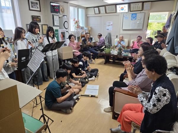 2023년 방문 공연 활동, 2024년 도서관 초청 행사에 이어 올해에도 마을 어르신들을 위한 연주 봉사활동을 실시하고 작은 정성을 담아 다과와 전통 음료를 전달했다.