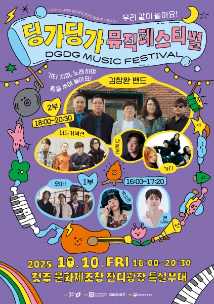 청주시와 청주시문화산업진흥재단은 오는 10일 오후 4시부터 문화제조창 잔디광장에서 ‘우리 같이 놀아요 딩가 딩가 뮤직페스티벌’을 개최한다.