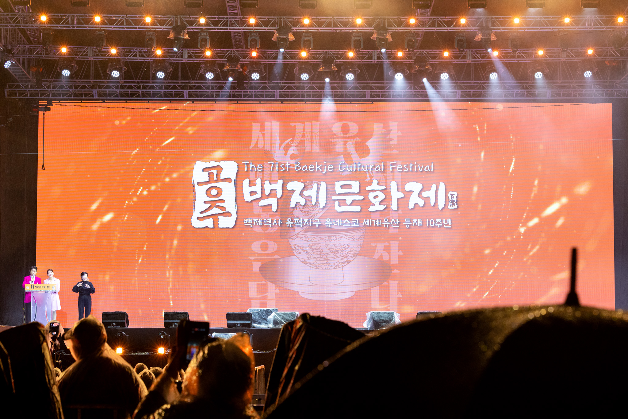 행사는 ▶백제혼불 점화 ▶개막 퍼포먼스 ▶실감형 주제공연 ‘웅진판타지아’ ▶인기 가수 축하공연(김지현, 김태우, 효린) ▶1071대 드론 불꽃쇼 등으로 구성돼 관람객의 큰 호응을 얻었다.