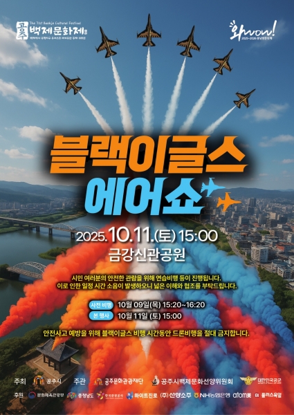 이번 블랙이글스 에어쇼는 71회를 맞는 공주시 백제문화제의 특별한 프로그램으로 공주시와 공주문화관광재단의 협력으로 유치되어 진행되고 있는 사업이다.